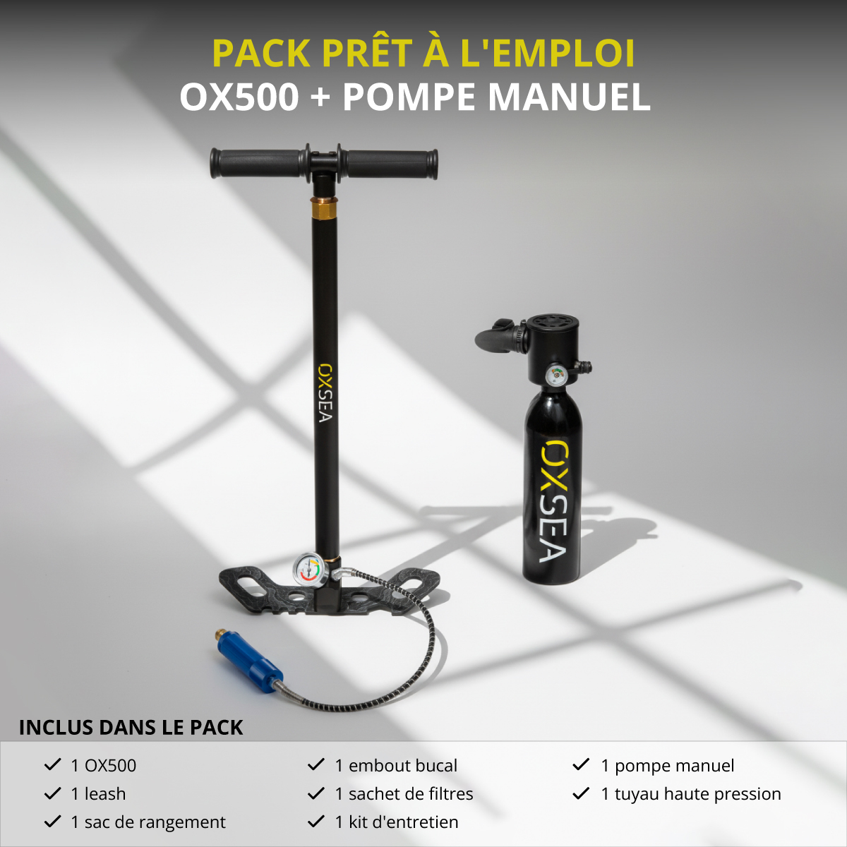 Découvrez le Pack OX500: mini-bouteille + pompe manuelle.