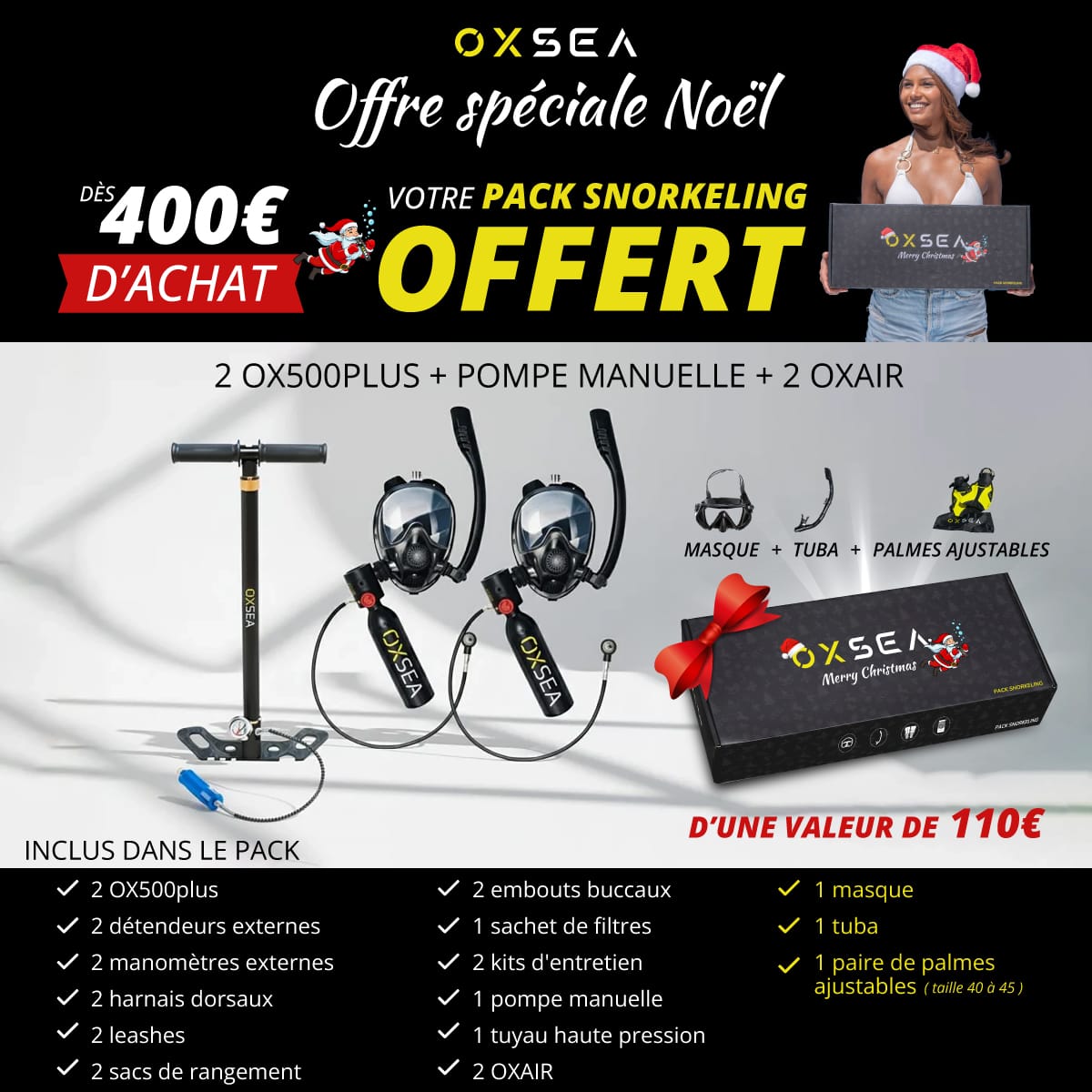 Découvrez le Pack OX500 PLUS DUO: deux mini-bouteilles + pompe manuelle + deux masques OXAIR.