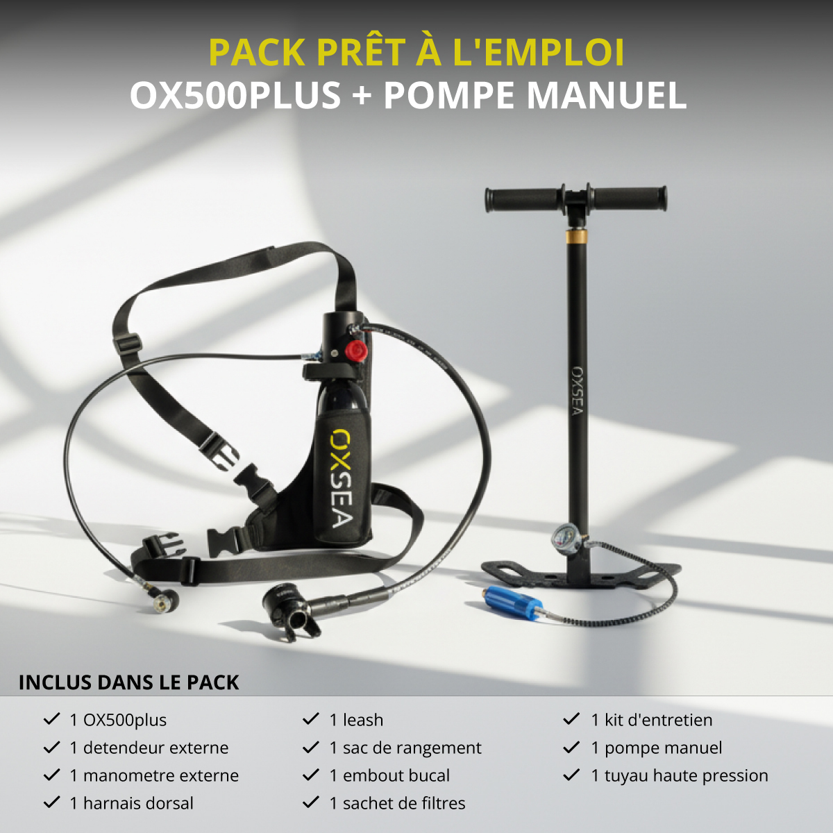 Découvrez le Pack OX500 PLUS: mini-bouteille + pompe manuelle.