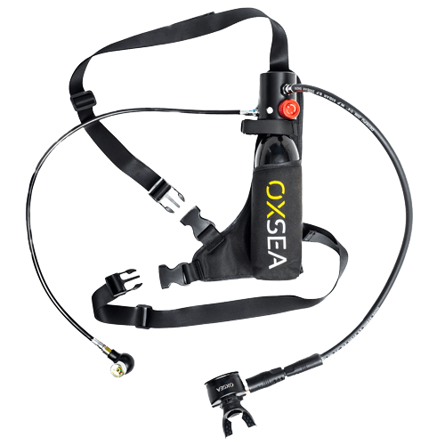 Questa maschera innovativa si collega rapidamente e facilmente a tutte le mini bombole della gamma OXSEA, permettendoti di passare dalla respirazione in superficie all'immersione in profondità in pochi secondi.
