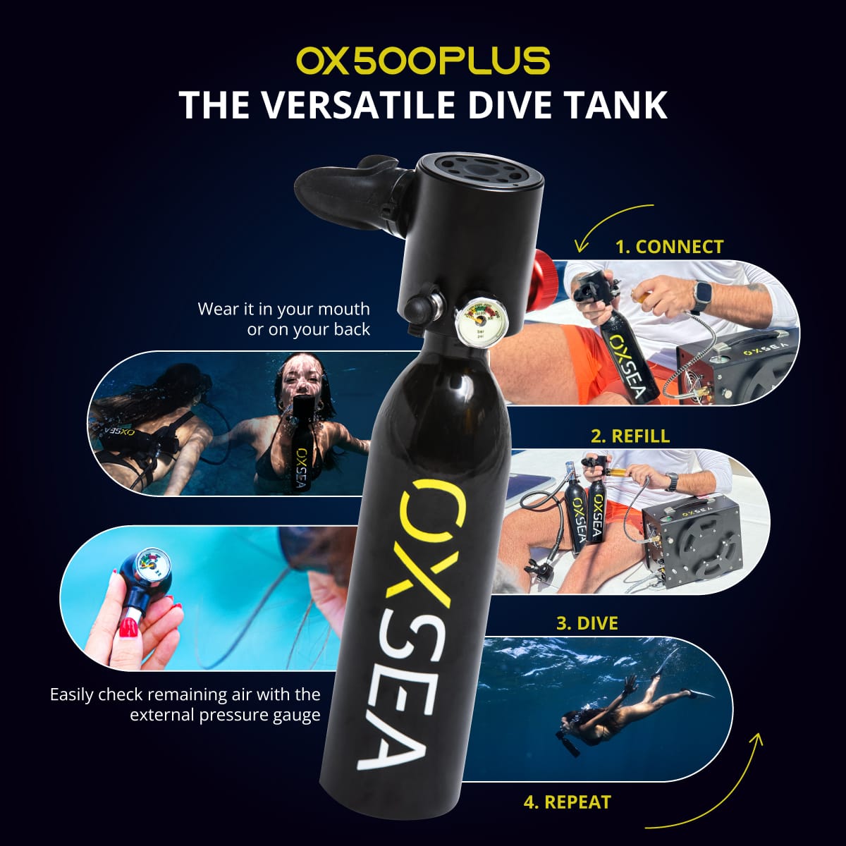 The OX500 PLUS offers up to ~8 minutes of underwater autonomy,