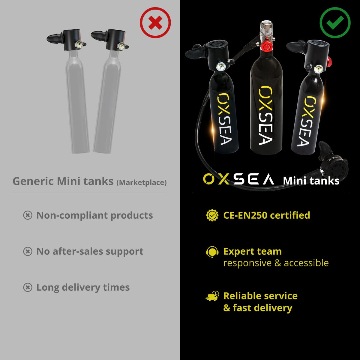 Absolutely fantastic. The OXSEA mini dive tank is compact, practical, and feels safe. Setup and instructions are clear as. Perfect whether you’re on the job at sea or chasing underwater adventures. A must-have bit of kit, highly recommend.