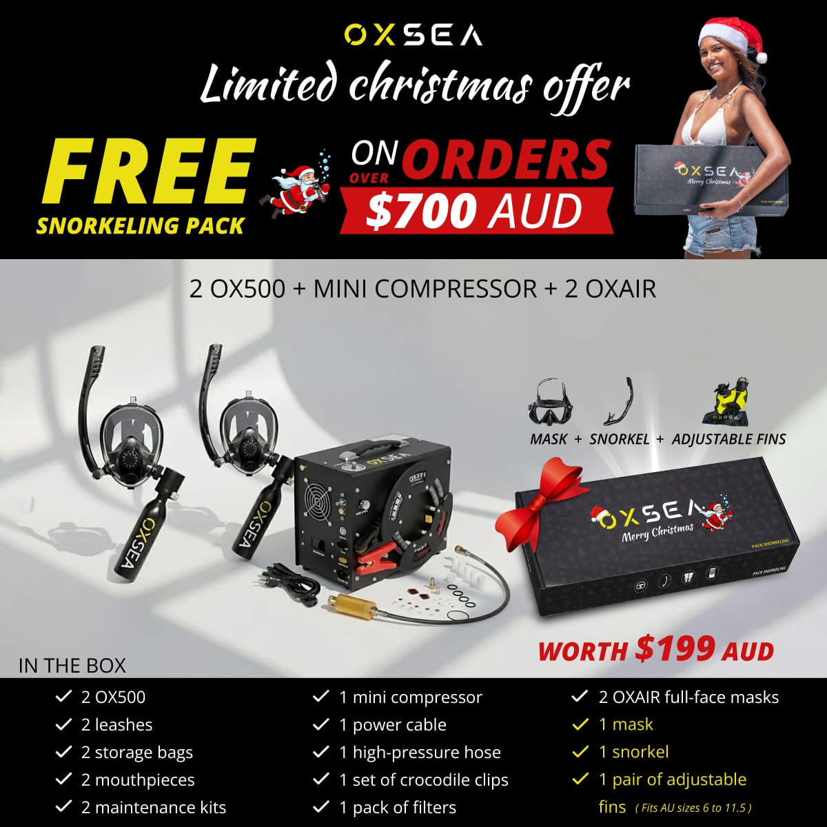 designed for explorers who value simplicity, safety, and freedom. This DUO pack includes two OX500 tanks, the OXSEA Mini Compressor, and two OXAIR masks.