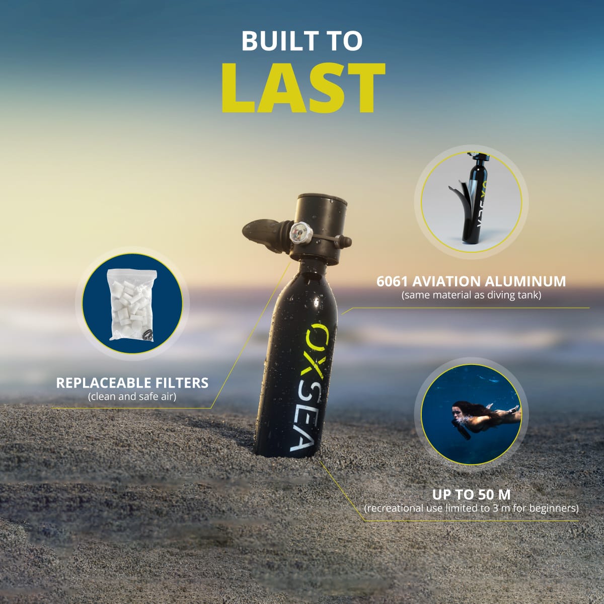 designed for explorers who value simplicity, safety, and freedom. This pack includes the OXSEA Mini Compressor for quick refills.