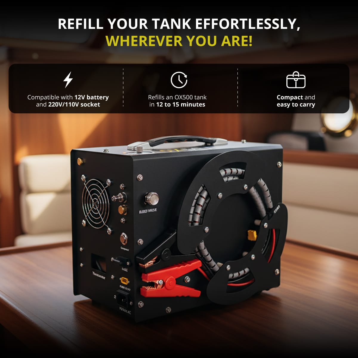 Discover the OX500 Pack: Mini Tank + Mini Compressor + OXAIR Mask.