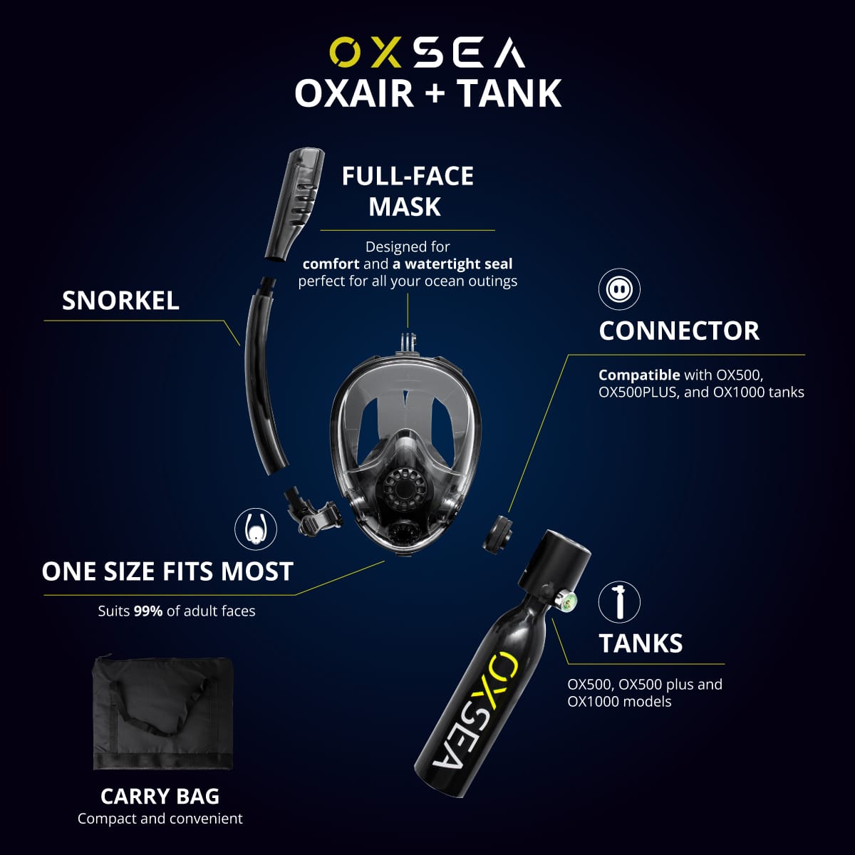 designed for explorers who value simplicity, safety, and freedom. This pack includes the OXSEA Mini Compressor and the OXAIR mask.