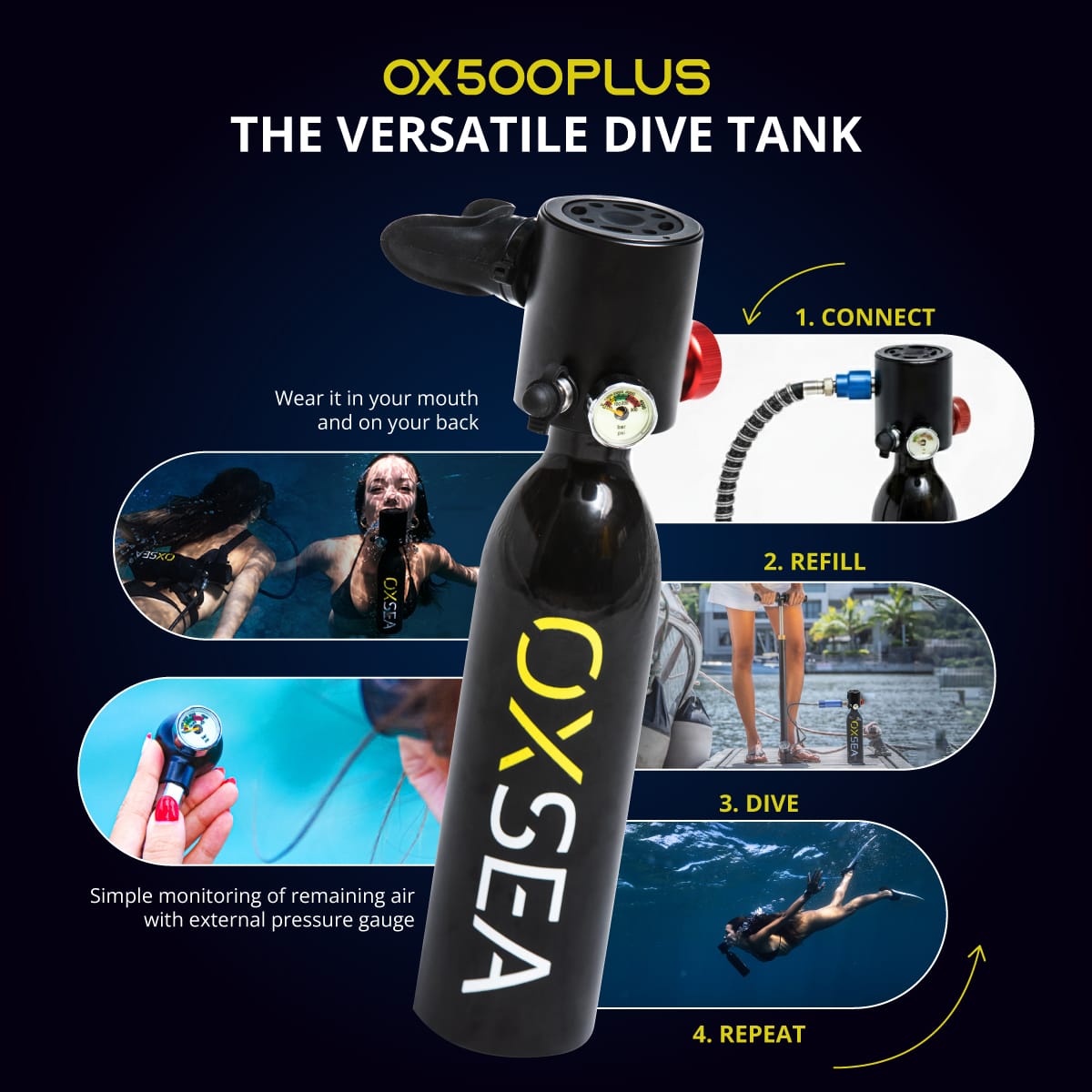 The OX500 PLUS offers up to ~8 minutes of underwater autonomy,
